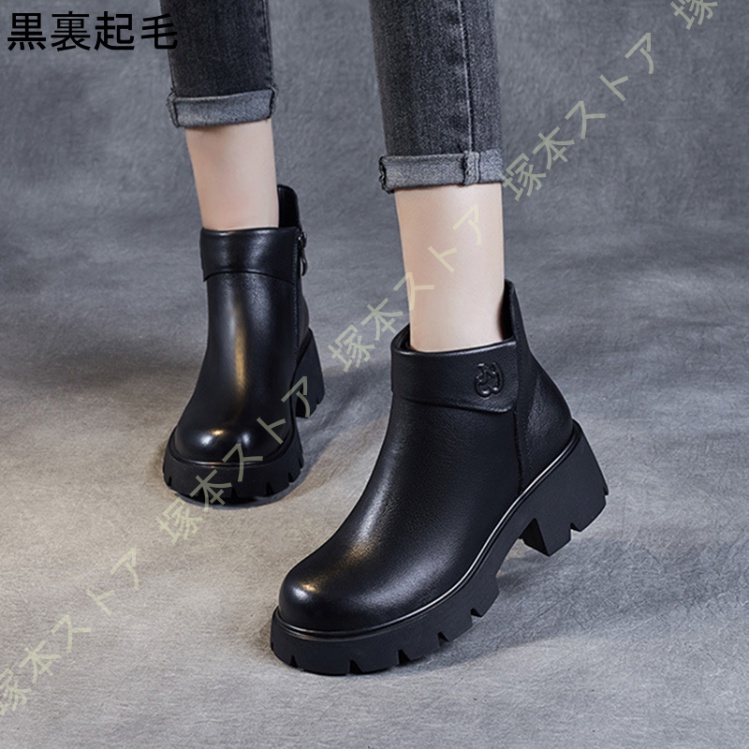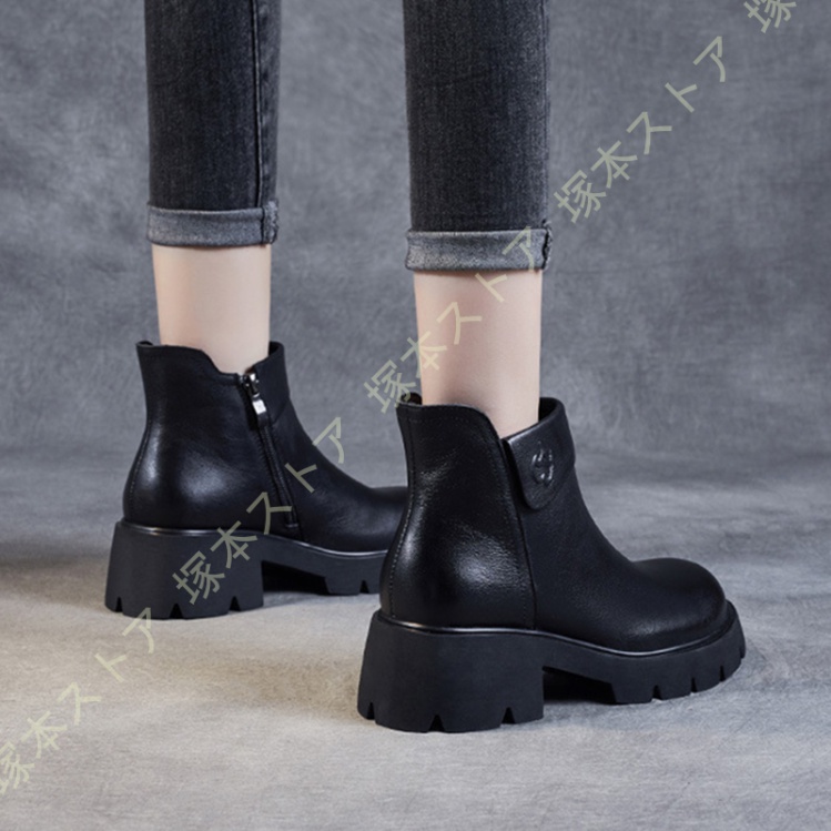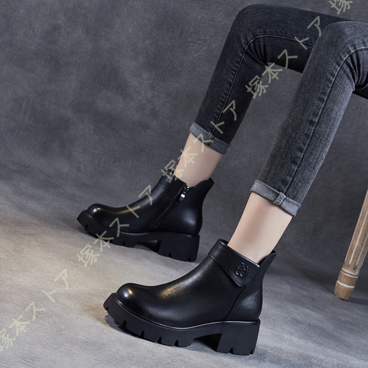 【商品詳細】アッパー素材: 牛革 ソール素材:ゴム ヒールのタイプ:太ヒール ヒールの高さ: 5.5 cm留め具の種類:ファスナー 背の悩み、短足の悩みはこのショートブーツで一発解決!流行のチャンキーヒールでプラス8cmの脚長スタイルをお楽しみください。■安心の安定感のチャンキーヒール太ヒールだから、かかとに体重が乗りやすく、高ヒールなのに安定感が抜群!疲れない&歩きやすい、安心の履き心地です。■履き回しが出来るトレンドに左右されない、ベーシックなブーティーです。通勤・通学などのデイリーユースは勿論、デートやおでかけにもオススメです。■大事な成人式や卒業式の日に!卒業式袴ブーツとして、袴にショートブーツはカワイイと、もはや定番コーデ。 ヒールが高いので着物の裾も汚さずに済むと好評です。ご注意ください!※画像とサイズは若干な誤差がある場合もあります。※製造過程での傷・汚れ、また入荷時の箱つぶれなどがございますので、ご理解の上ご購入くださいませ。※何か問題があれば、ぜひメールで連絡してください。"}