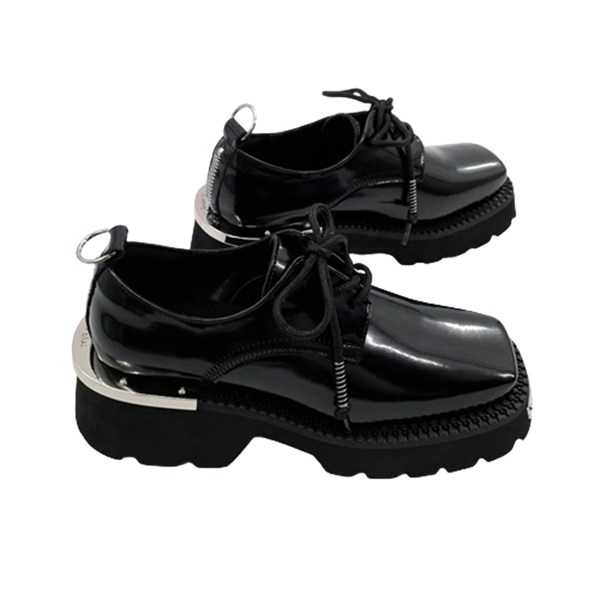 厚底 レースアップ レザー ビジネスシューズ ミドルヒール7cm ダービーシューズ メンズ スクエアトゥ ラメ 本革 紐 きれいめ 正式