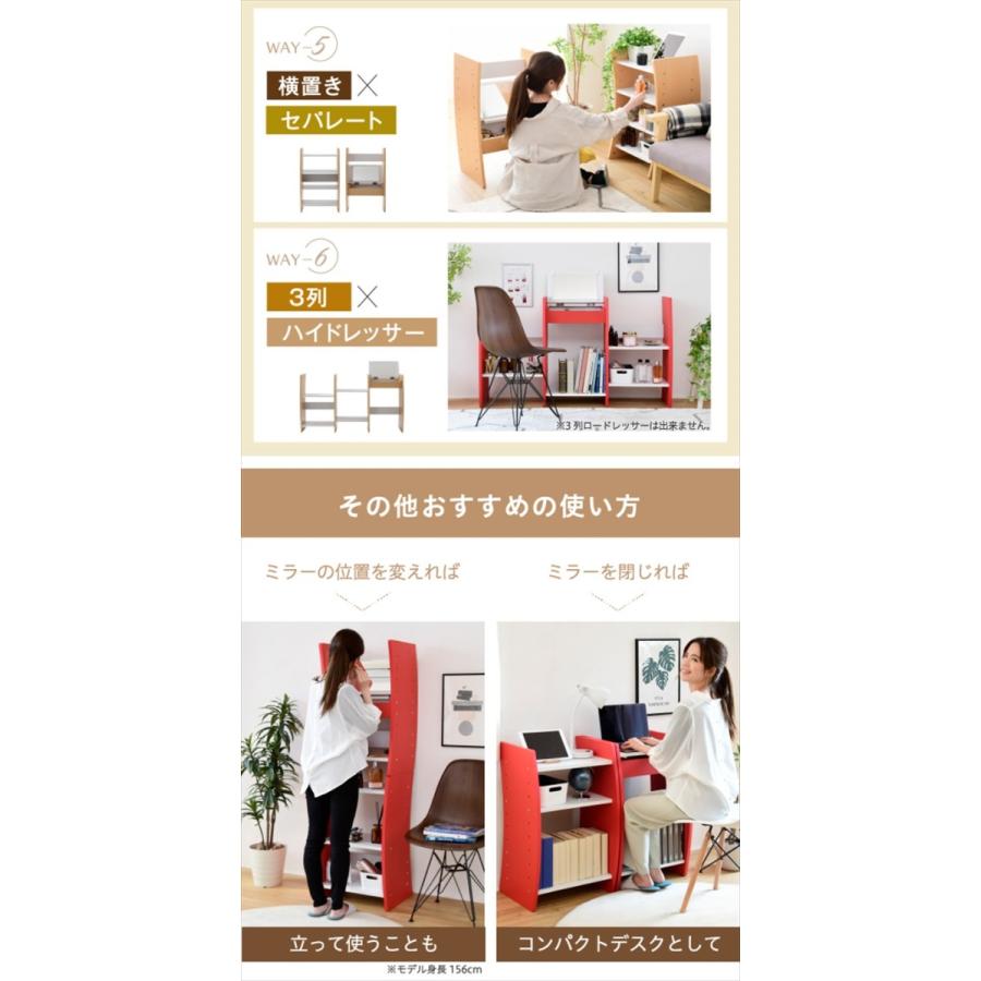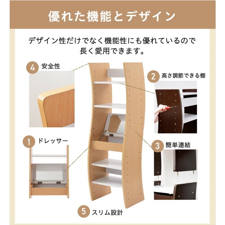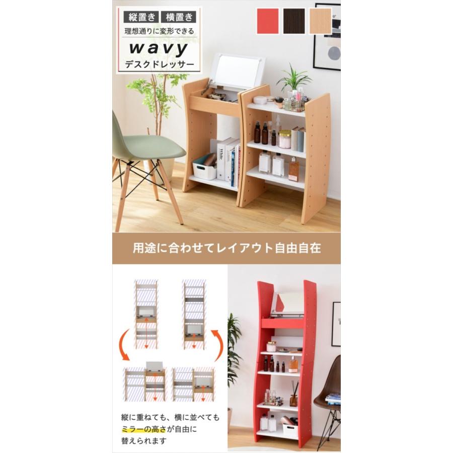 ドレッサー デスク WAVY ロータイプ ハイタイプ スリム 省スペース コンパクト 収納 棚 おしゃれ 幅46 高さ150.5 高さ調節 ホワイト ブラウン 赤 ナチュラル
