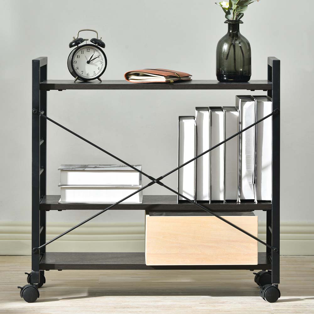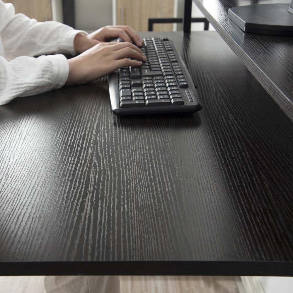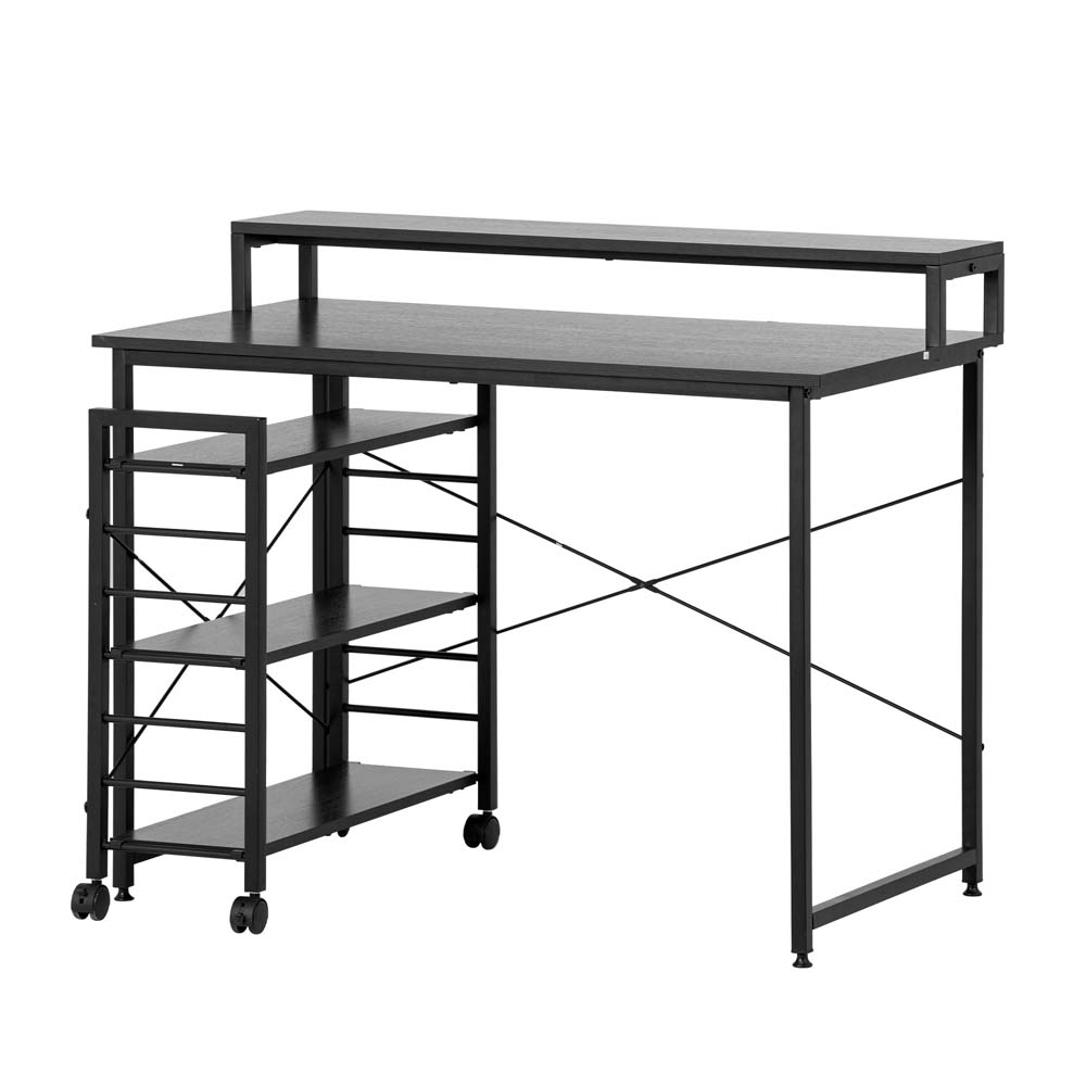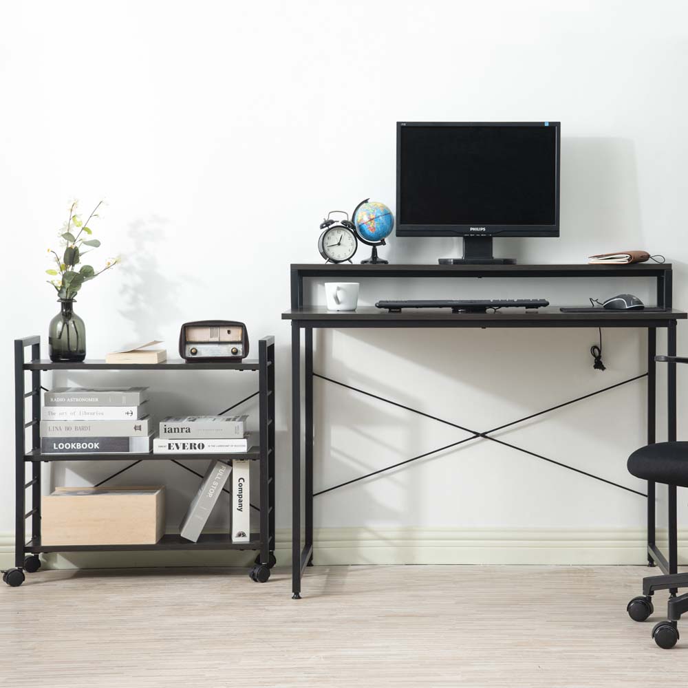 新品登場 ダークブラウン パソコンデスク キャスター付きで移動可能ラック付き デスク オフィスデスク 学習デスク