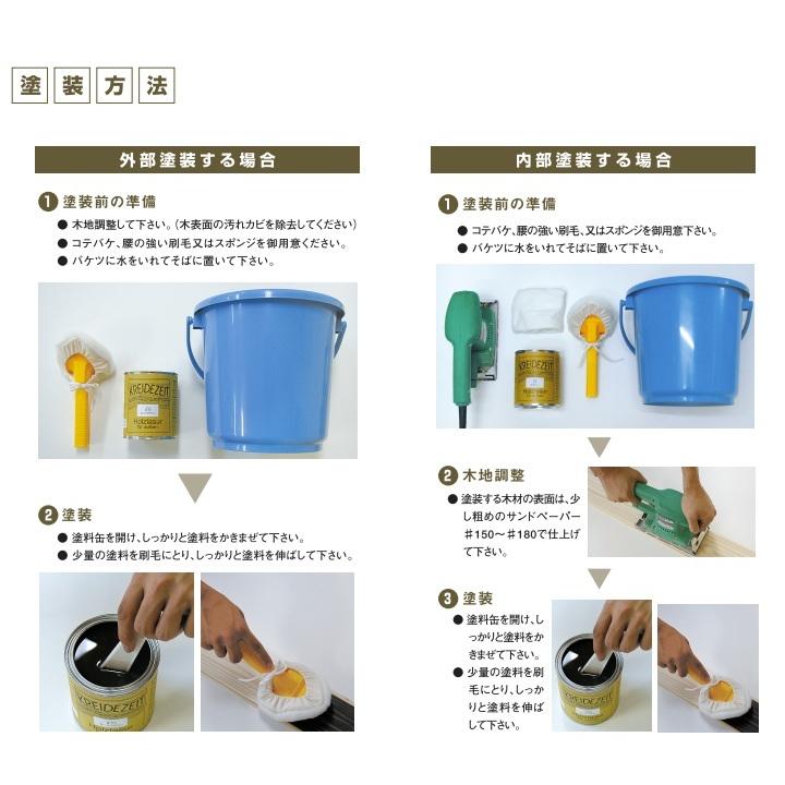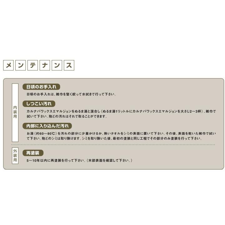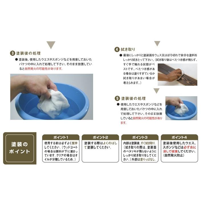 施工方法:塗装後、すぐ拭き取り。(拭き取りの際は、塗装面のベタツキが残らないようにしっかり拭き取りをしてください。)