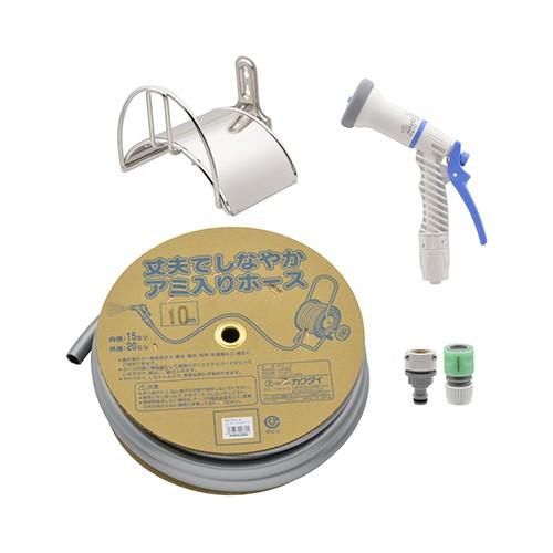 ●メーカー:カクダイ●型式:GA-QD049●原産国:日本●生産国:日本●使用温度:1〜40℃●使用圧力:0.05〜0.6MPa●出荷目安:10営業日以内"} ●ホースと散水ノズルと片付け用のホースハンガーのセットです。