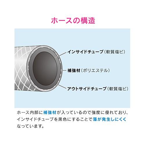 ●2層構造と補強材の使用により折れにくく、しなやかなホースです。