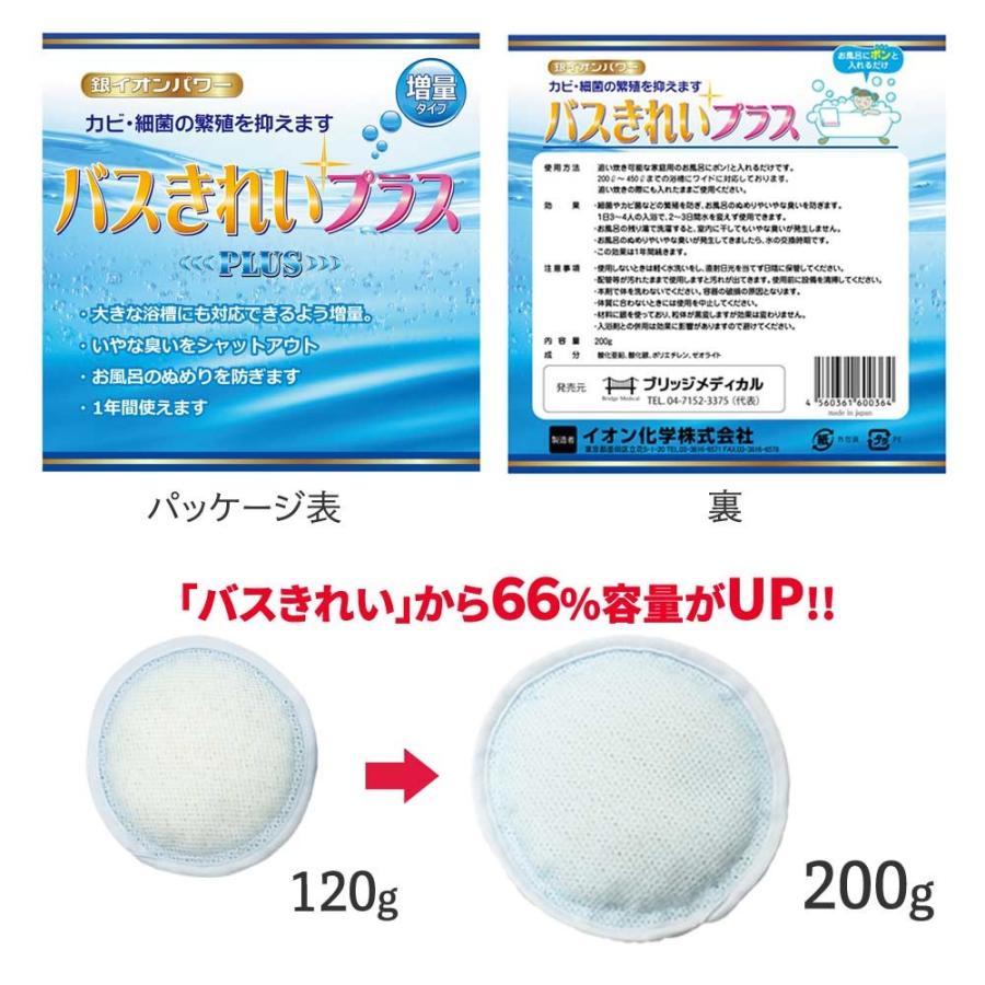 ■バスきれいが66%増量アップで新登場!■お風呂の掃除もグーンと楽になります。■カビや細菌の繁殖を抑えます。■お風呂のヌメリを抑えます■いやなニオイの発生を防ぎます。■この商品は千葉県より宅急便で発送致します。【発送方法についてご注意ください】あすつく利用でない場合は、お届け日時のご指定をご利用いただけます。あすつくをご希望の場合は注意事項をお読み下さい。以下の場合はあすつく対象外です。・正午以降のご注文・当店休業日のご注文・対象エリア外のご注文・あすつく未対応商品との同梱・クレジットカード、以外でのご注文・オーソリNG、郵便番号違いなどご注文に不備がある場合関連キーワード: 風呂場 風呂 浴室 カビ 対策 入れるだけ 掃除 安全 経済的 お風呂 バスきれい 銀イオン ぬめり■バスきれいプラスをお風呂に入れると銀イオンが溶出されカビや雑菌の繁殖を抑え、浴室全体をキレイに保ちます。