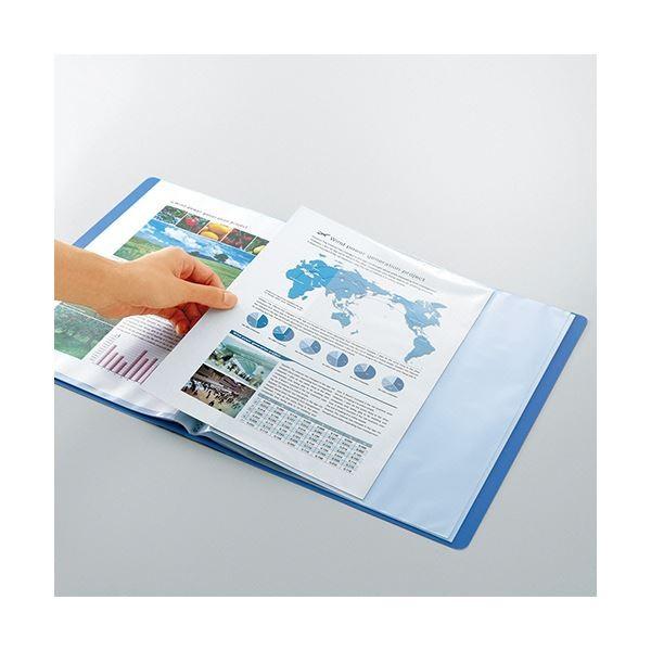 ●倍のサイズの書類も見開きで収容できるクリヤーブック、A5サイズの40ポケットで青色の10冊セットです。