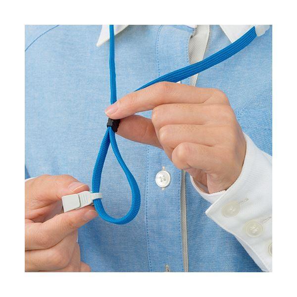 ●名札用ストラップのブルーです。●長さ調整が可能な機構の安全パーツ付。クリップを動かすことにより安全パーツを好きな位置に移動できます。
