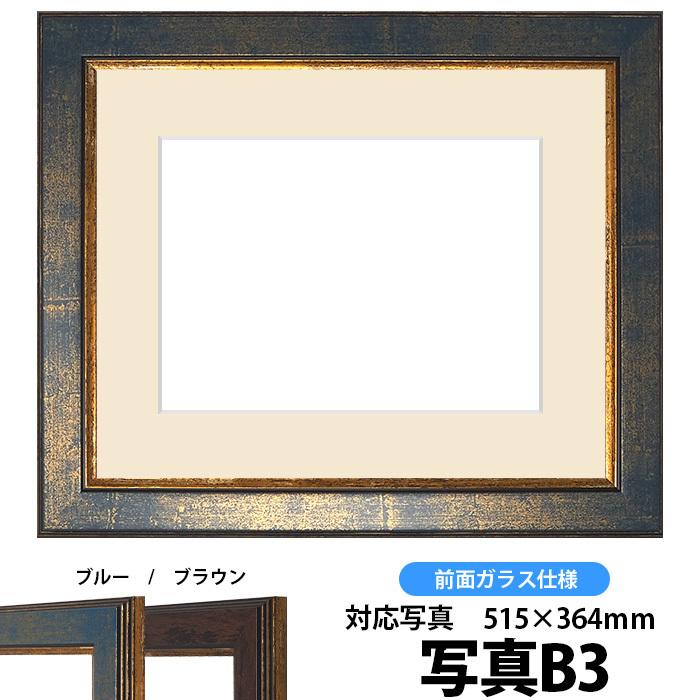 額縁 フレーム 写真用額縁 9650/ブルー B3(515×364mm)専用 前面ガラス仕様 マット付き