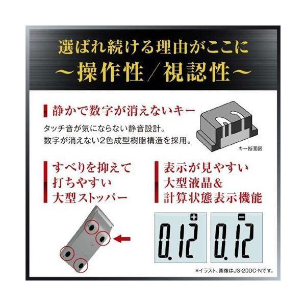 機能:早打ち機能(3キーロールオーバー)、ツーゼロ(00)、桁下げ(バックスペース)、サインチェンジ(符号切替)、オートパワーオフ、四則計算、四則定数計算、マルチパーセント計算、平方根(ルート)、概数計算、大型ストッパー