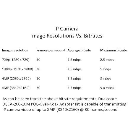 説明: A limited supply of DECA-200-10M is available at a lower price of $39.98 per set than Dualcomm DECA-200 PoE-over-Coax Adapter Kit. DECA-200-10M works reliably at 10Mbps which is more than enough for most high-resolution IP camera video transmissions. It is recommended to use DECA-200-10M with a PoE switch or NVR that can be manually configured to operate at 10Mbps (auto). Tested and confirmed to work reliably with TP-Link"s 5, 9 or 18 port PoE/PoE+ Switches in the "Extend Mode": TL-SF1005P (ASIN: B076PRM2C5), TL-SF1009P (ASIN: B08J88BHGK) and TL-SL1218P (ASIN: ?B0897VX52P)
