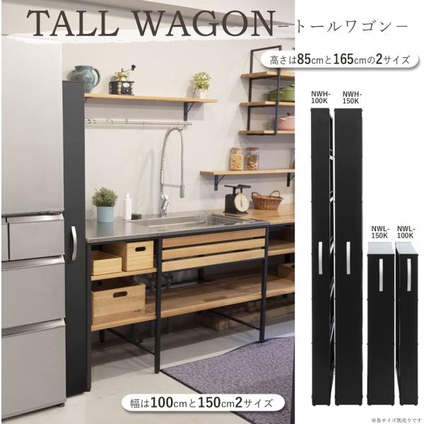 トールワゴン ハイタイプ 幅15cm NWH-150K 収納 隙間 ワゴンラック 隙間ラック キャスター ブラック ストッカー サニタリー すき間収納 薄型 シンプル 田窪