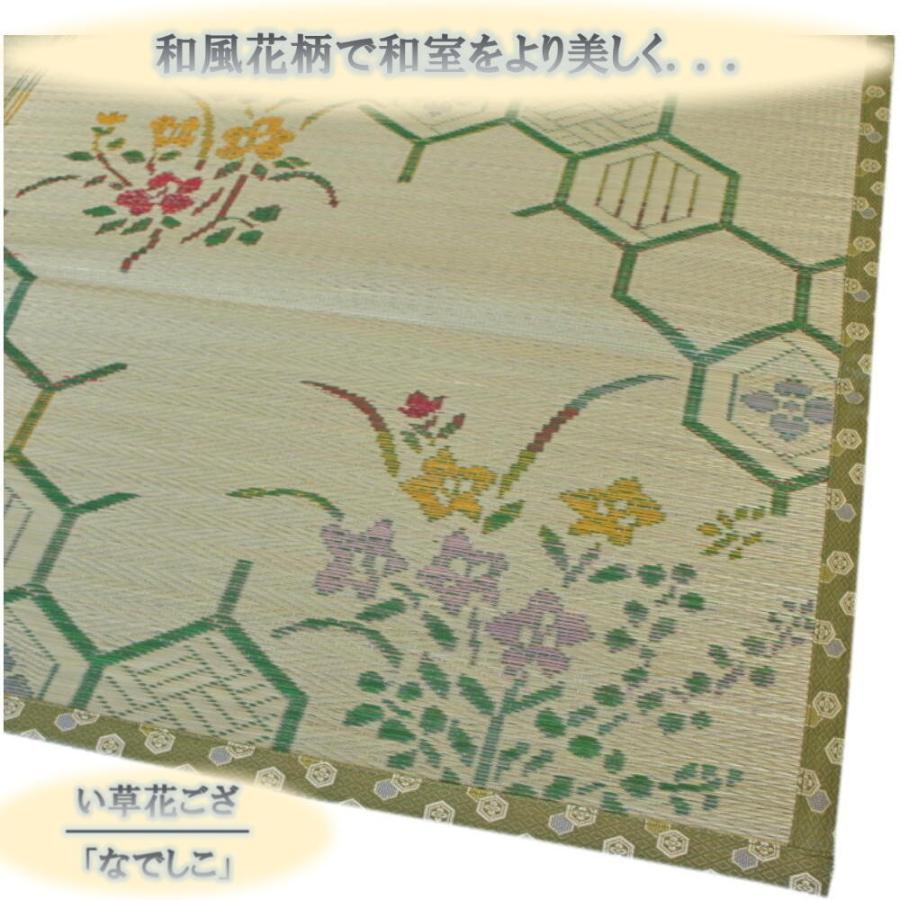本間6畳(286x382cm) 花ござ「なでしこ」伝統的な和風花柄のい草カーペット