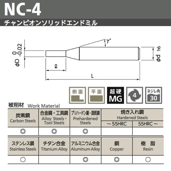 【送料無料】 NS 日進工具 NC-4-8.2 チャンピオンソリッドエンドミル 01-00244-00820