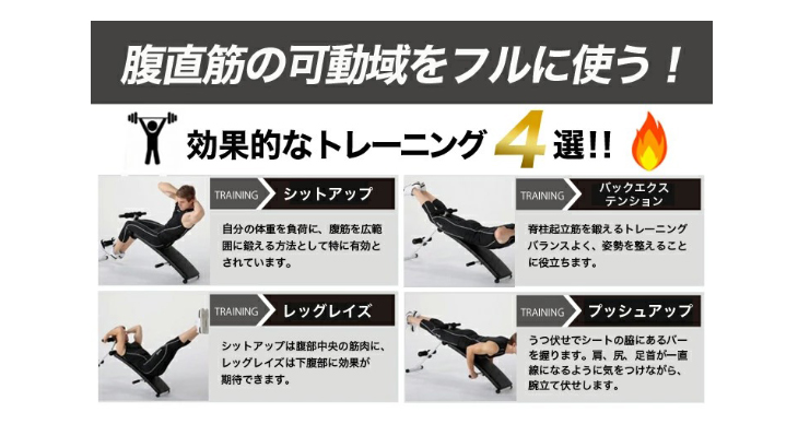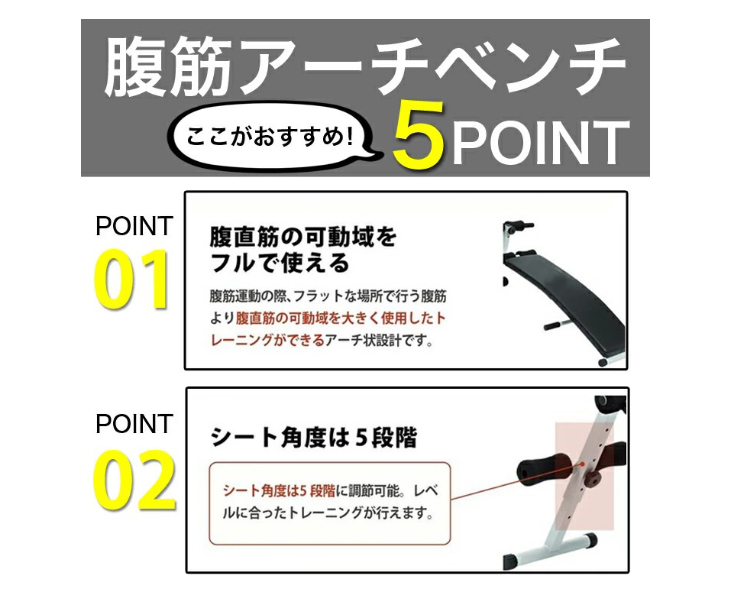腹直筋の可動域をフルに使うアーチ状のシットアップベンチ