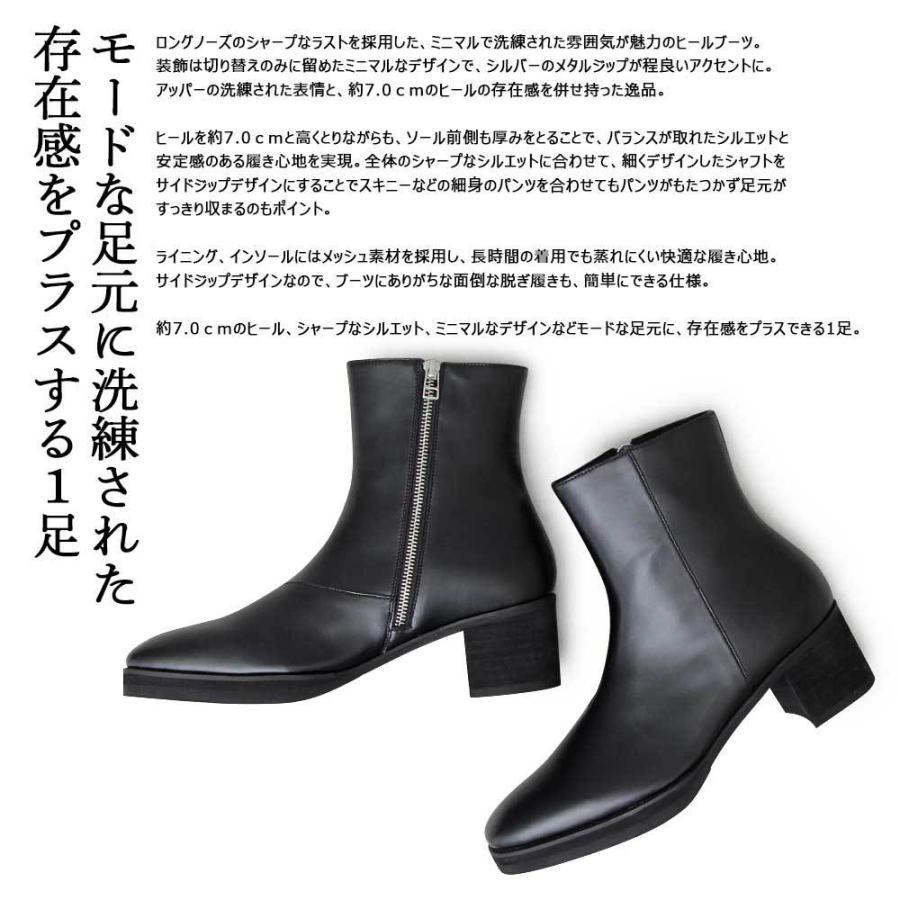 ヒールブーツ メンズブーツ サイドジップ ロングノーズ am