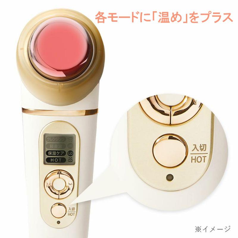 クレンジング・超音波ケア・保湿ケア、おうちエステのフルコース。お肌を温めながらのクレンジング、超音波振動での弾力肌ケア、たっぷり潤いを与える保湿ケアまでしっかりフォローします。●クレンジング落としきれない毛穴の汚れもクレンジングもやさしく肌の上をすべらせるだけで簡単にオフ。温めをプラスすることでお肌がやわらかくなり、汚れが落ちやすくなります。●超音波ケア美容液や化粧水を塗って肌をすべらせるだけ。超音波の振動によって美容成分が効率よくお肌に届き、ハリと弾力を与えます。●保湿ケア塗るだけではなかなか浸透しにくい潤い成分も、保湿ケアでエステすることで角質層まで浸透させることができます。4981747075222エステ/セルフ/美肌/スキンケア/美顔器<上手な使い方>