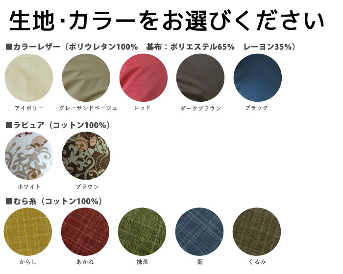 | 素材 | <カラーレザー>ポリウレタン100% 基布:ポリエステル65% レーヨン35% <ラピュア>コットン100% <むら糸>コットン100% <つむぎリバーシブル>コットン100% |